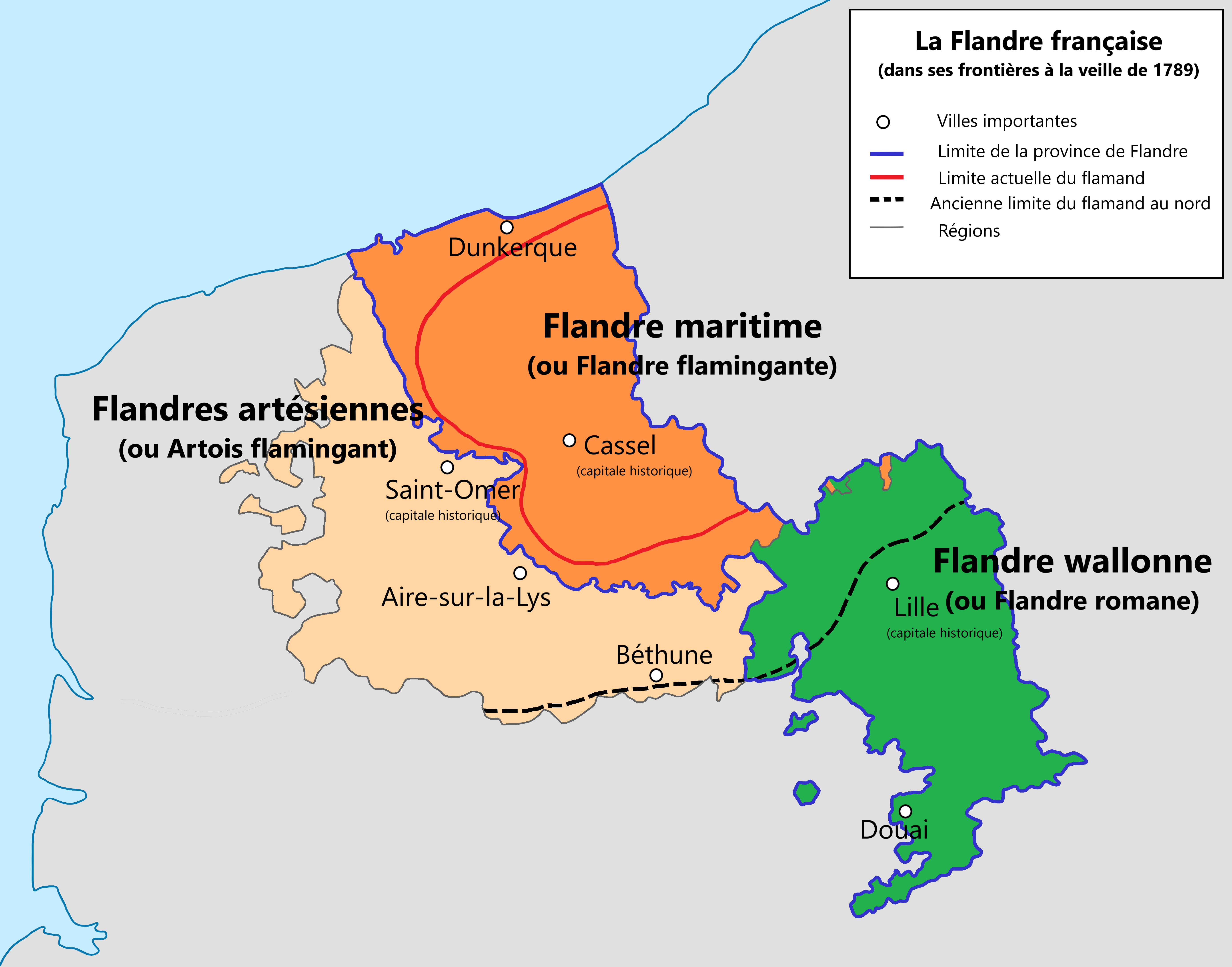 Pour ma part, j’habite en flandre flamingante, pas loin de la limite entre la flandre maritime (aujourd’hui la CUD) et la flandre intérieure (aujourd’hui les collectivités CC-HF et CC-CF), limite marquée par l’ancien trait de côte qui sépare un territoire réellement plat et dont certaines parties (les Moëres) sont en dessous du niveau de la mer, d’un territoire de plus en plus vallonnée à mesure qu’on va vers le Sud.
